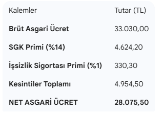 2026 Yılı Yeni Asgari Ücret Hesaplama Tablosu