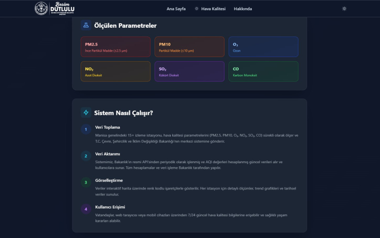 ‘havakalitesi.manisa.bel.tr’ adresi üzerinden izlenebilecek olan Hava Kalitesi Takip Sistemi’ne Manisa Büyükşehir Belediyesi web sitesinden de ulaşılabiliyor.