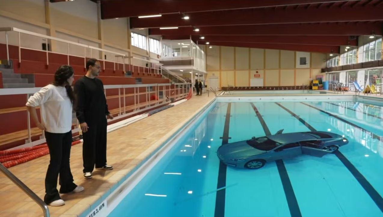 Fransa’daki La Ciotat şehrinde ilginç bir kaza yaşandı. Aracını kapalı bir yüzme havuzunun dibine park eden sürücü, fren ve gaz pedallarını karıştırdı. Sürücü fren yerine gaza basınca araç, camı kırarak yüzme havuzuna uçtu.