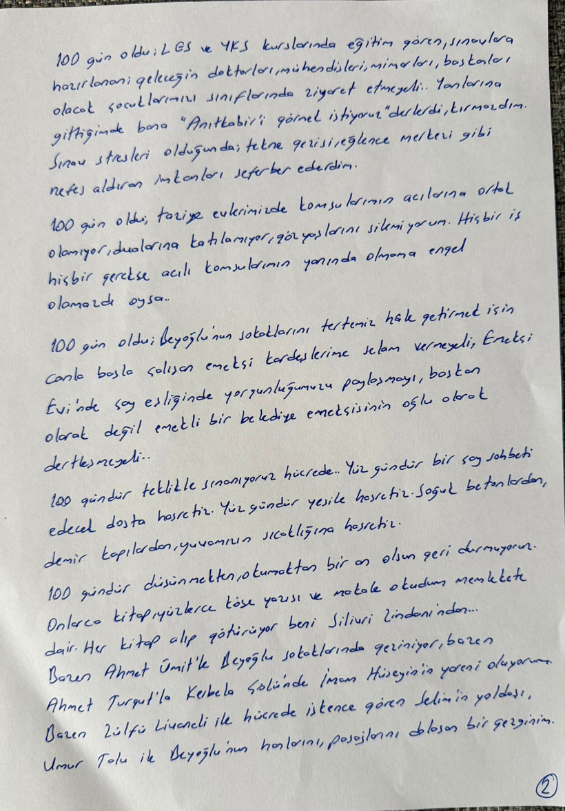 100 gün dostlarım, Silivri Zindanı’nda tutsağın, göğün mavisine, ağacın yeşiline, dostun sohbetine hasretiz.