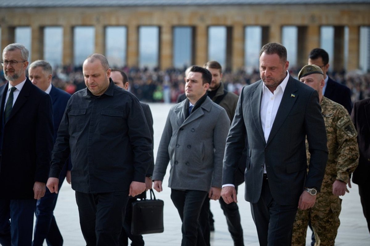 Zelensky, beraberindekilerle Misak-ı Milli Kulesi’nin önünden yürüyerek Büyük Önder Gazi Mustafa Kemal Atatürk’ün mozolesine geldi.
