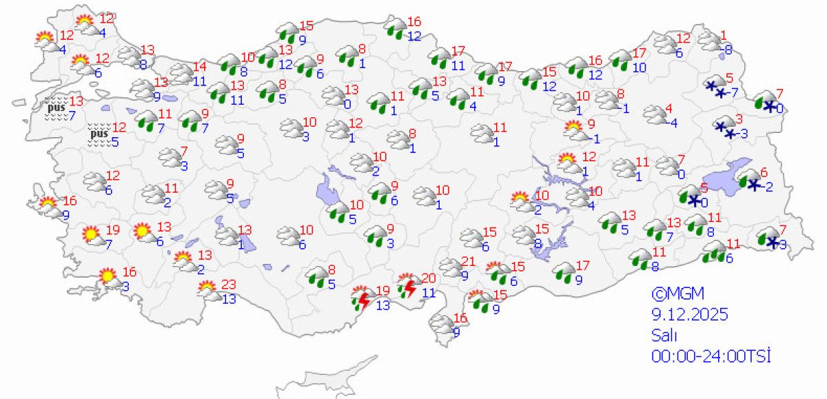 MGM haritalarına göre, Marmara ve Karadeniz’in iç bölgelerinde yer yer yağmur beklenirken, Ege kıyılarında sağanaklar etkili olabilir.